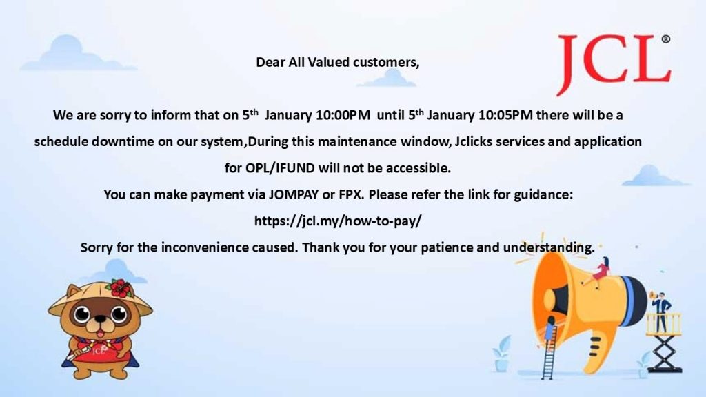 – During this time, you can make payment via JOMPAY or FPX. Please refer the pautan for guidance: https://jcl.my/how-to-pay/